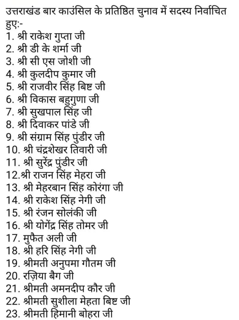 - बार काउंसिल चुनाव में डी.के. शर्मा की शानदार जीत, रुद्रपुर में अधिवक्ताओं ने किया भव्य स्वागत