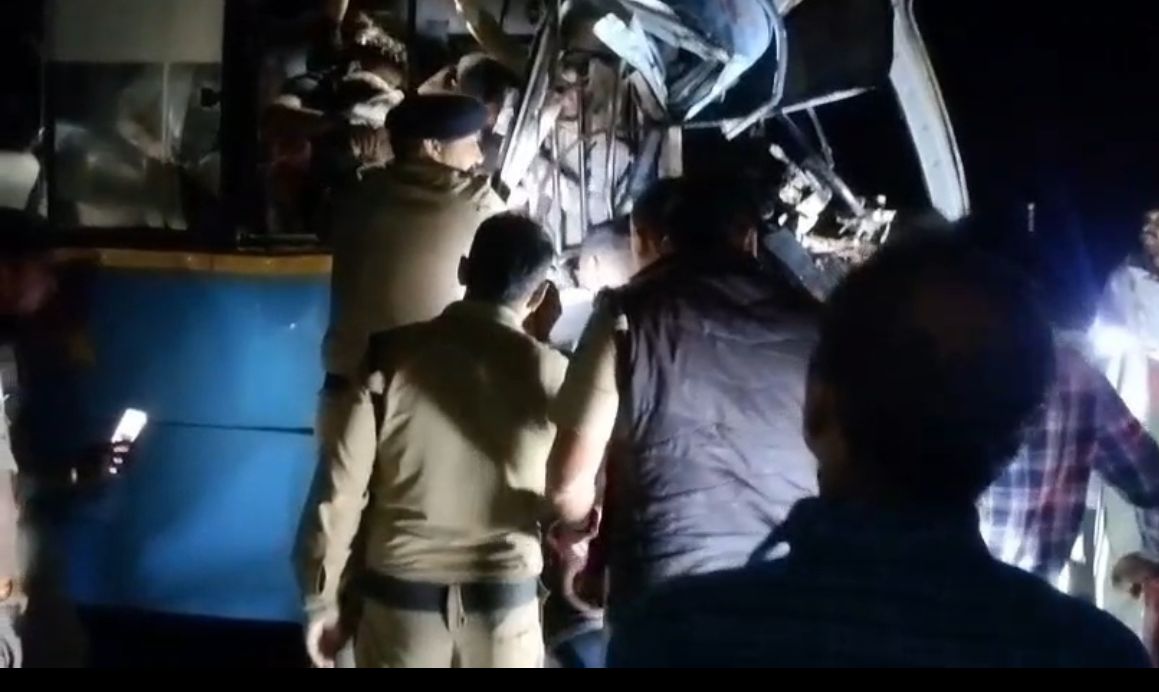 बारात और रोडवेज की बसों में आमने सामने की टक्कर, मौके पर मची चीख पुकार, फंसे हुए दो लोगों को पुलिस ने निकाला बाहर