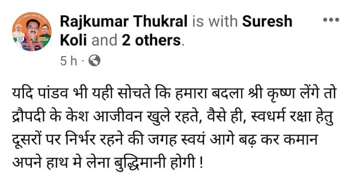 बताते चलें राजकुमार ठुकराल की फेसबुक आईडी से की गई पोस्ट उनपर भारी पड़ गई है। जिला प्रशासन द्वारा गठित कमेटी ने राजकुमार ठुकराल को नोटिस जारी कर दिया है। जिसके बाद से सभी राजनीतिक व्यक्तित्व फूंक फूंक कर कदम रख रहे हैं।