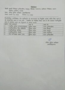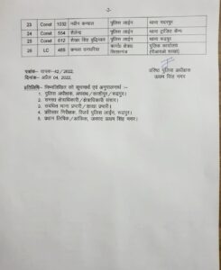 Uttarakhandऊधमसिंह नगर पुलिस विभाग में भारी तबादले, देखिए कहा किसे मिली पोस्टिंग। Kulbeer Singh DhillonApril 5, 2022 Share the newsजिले के कप्तान ने भारी संख्या में पुलिस दरोगा, हेड कांस्टेबल व कॉन्स्टेबलो के तबादले किए हैं।