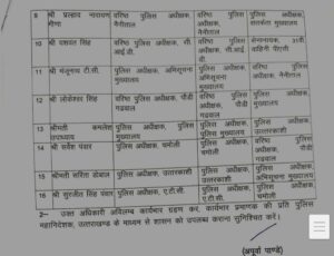 इसके साथ ही हल्द्वानी, काशीपुर और हरिद्वार के पुलिस उपाधीक्षकों (सीओ) का भी तबादला कर दिया गया है। पुलिस महकमे में हुए इन फेरबदल को कानून-व्यवस्था को और सुदृढ़ करने तथा त्योहारी सीजन में पुलिसिंग को प्रभावी बनाने की दिशा में उठाया गया कदम माना जा रहा है।